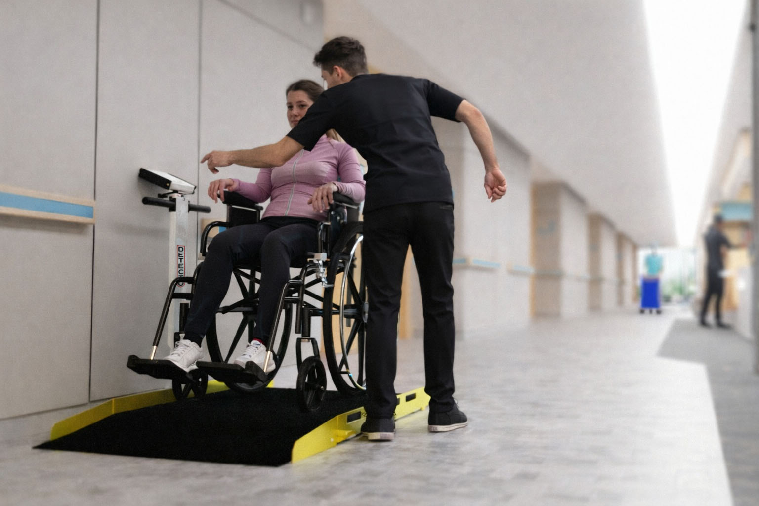 Its ADA-focused design supports smooth roll-on weighing with a 40-inch platform length and 1:8 shallow-angle ramps that improve wheelchair maneuverability and ease of access. Integrated side guide rails help maintain proper positioning during weighing, and the low-profile 2-inch-high platform enhances patient comfort while promoting efficient workflow in busy healthcare environments.