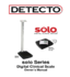 Assembly, battery operation, weighing and height measurement, and setup and calibration instructions for the SOLO and SOLO-RI scales.